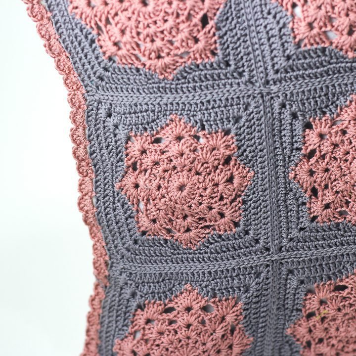 غطاء وسادة ، رمادي غامق ، مع ورد Madnalas وحواف