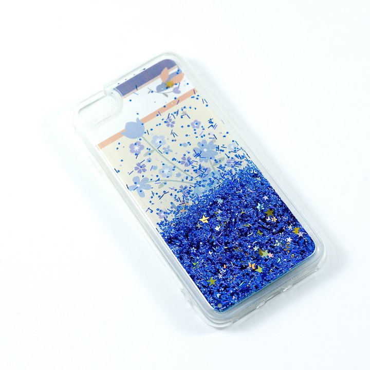 - Transparent with moving blue glitter